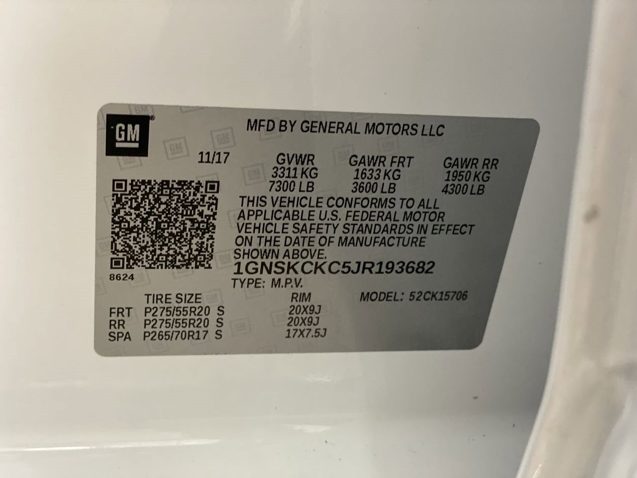 VIN: 1GNSKCKC5JR193682