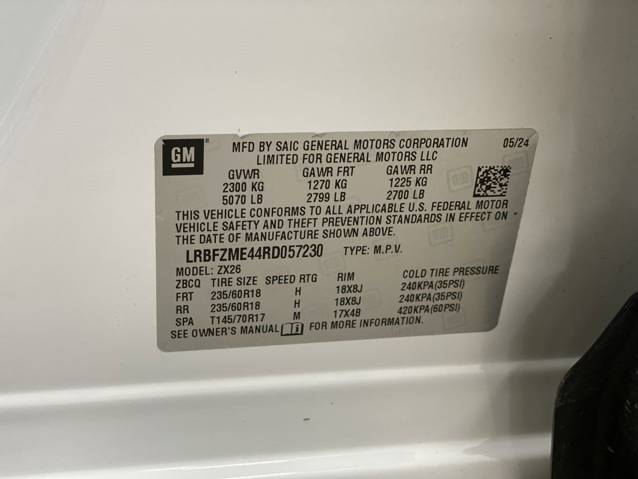 - Tires, P235/60R18 all-season